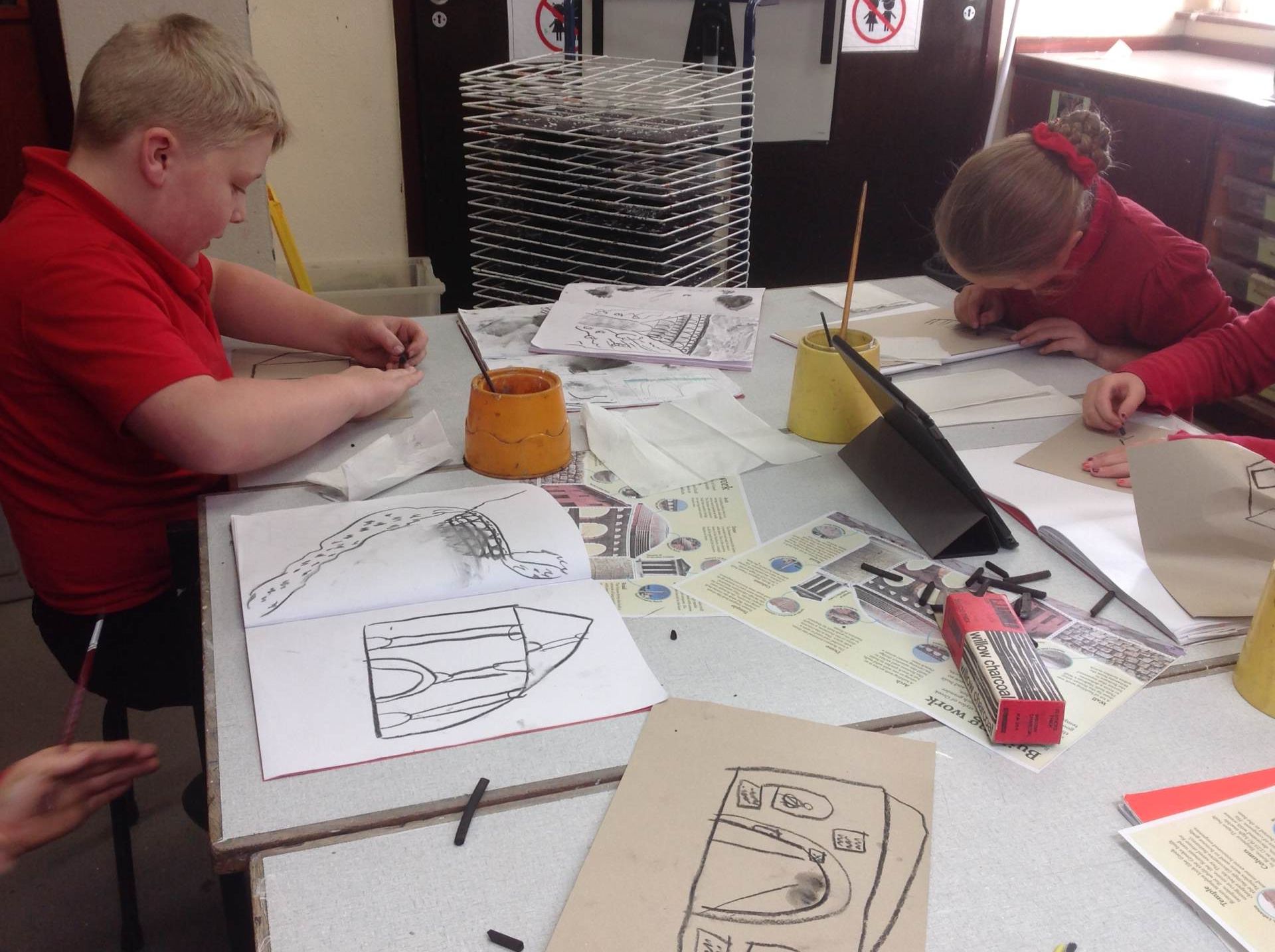Kenwyn used charcoal to draw bridges and buildings